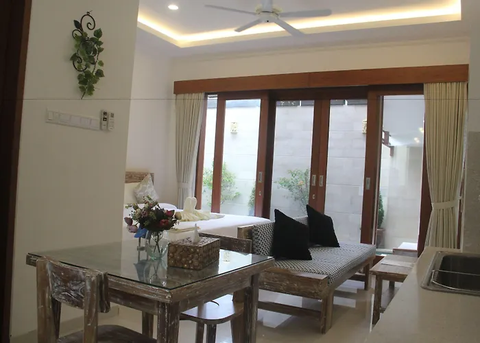 Das Green Studio Apartment Seminyak mit einer Fläche von 38 m^2 liegt im Zentrum von Seminyak. Die Gäste des 1-Zimmer-Apartments im Stadtviertel Sunset Road von Seminyak können von einem Außenschwimmbad profitieren.